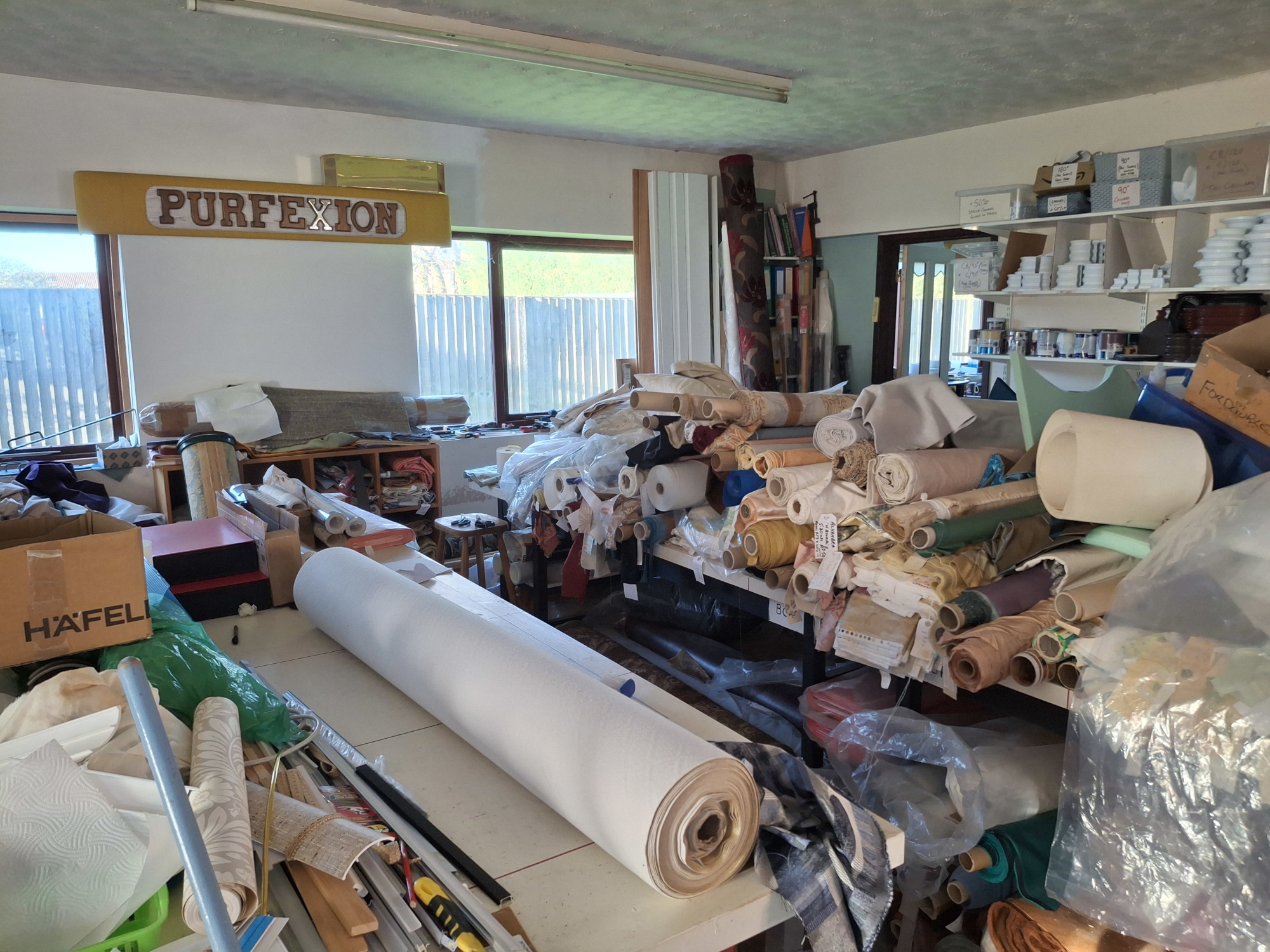 Graham has been in uphostery, curtains, blinds and haberdashery for many years and these rolls are part of his fabric trove. Lots of very good quality fabric that he has accumulated over the years. Lots of it has high original retail prices so any buyers are getting a bargain. He wants the space in order to have more room for his new business flexicolumn. Partly to create a showroom space and partly just to create more room. Also for his eventual retirement planning.